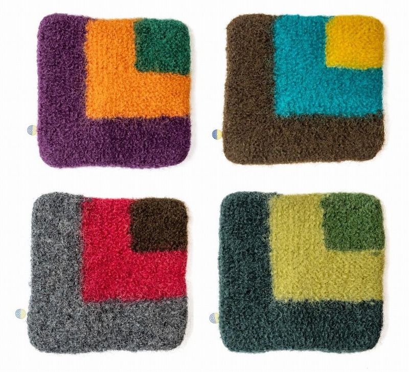 何種類でもほしくなるカラフルなフェルティングマット。髙橋さんのニット作品は『はこだて工芸舎』(末広町)などで販売。