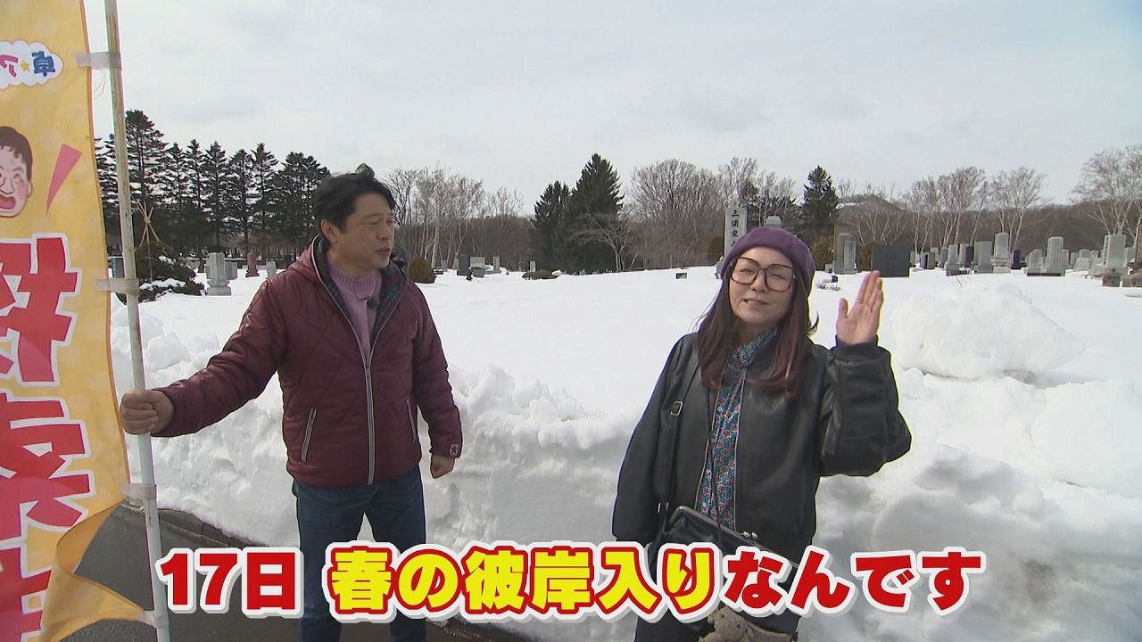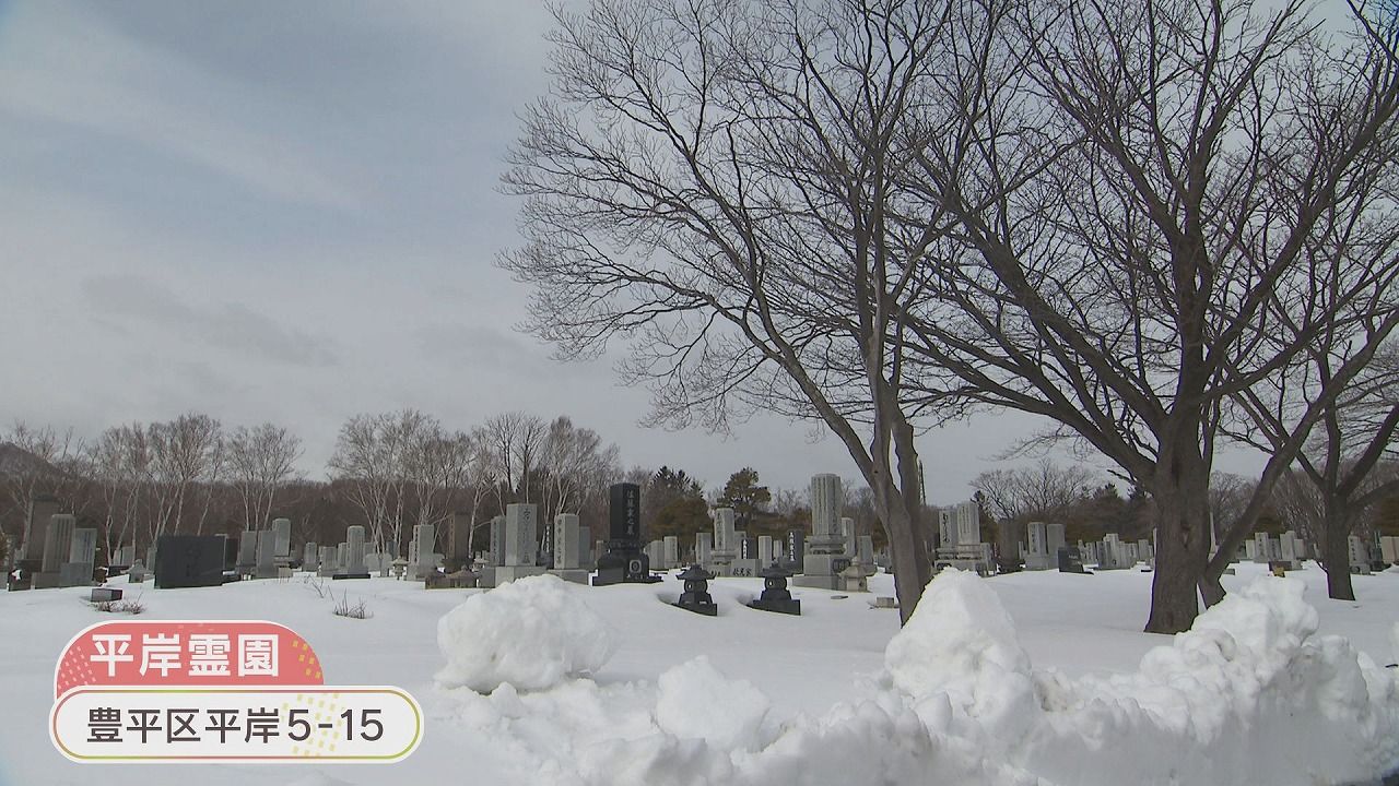 スコップを持ってお墓参りというのは北海道らしい光景です。