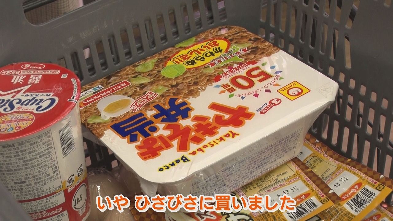 番組スタッフ:「カップラーメンは結構食べられる?」美紀さん:「いや、久々に買いました。子どもが昼寝してる間に何かを焼いたら音が出て、起きたら残念なので…」