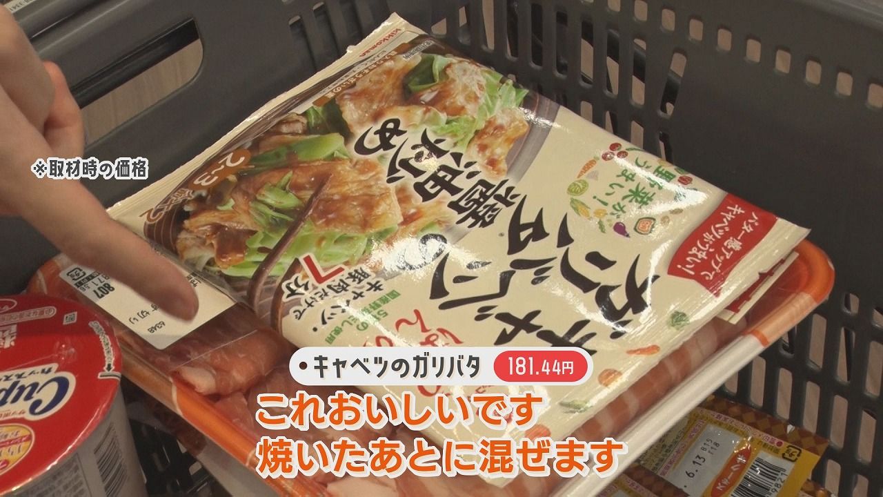 番組スタッフ:「いま手に取られたのは何でしょうか?」美紀さん:「豚バラ。キャベツと焼きます。これ、これおいしいです。焼いたあとに混ぜるやつです」