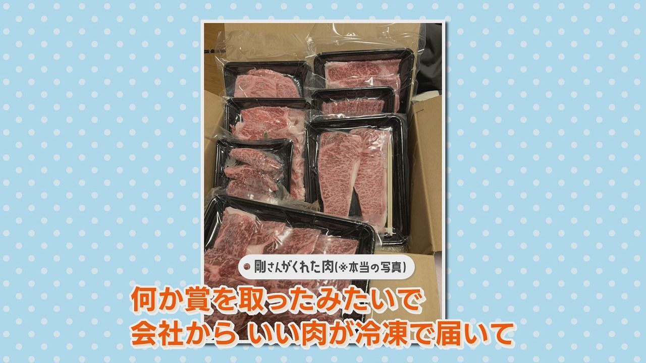 美紀さん:「何か賞を取ったみたいで、旦那の会社からいい肉が冷凍で届いて、でも『冷凍庫入らないから半分もらってくれないか』ってなって…」