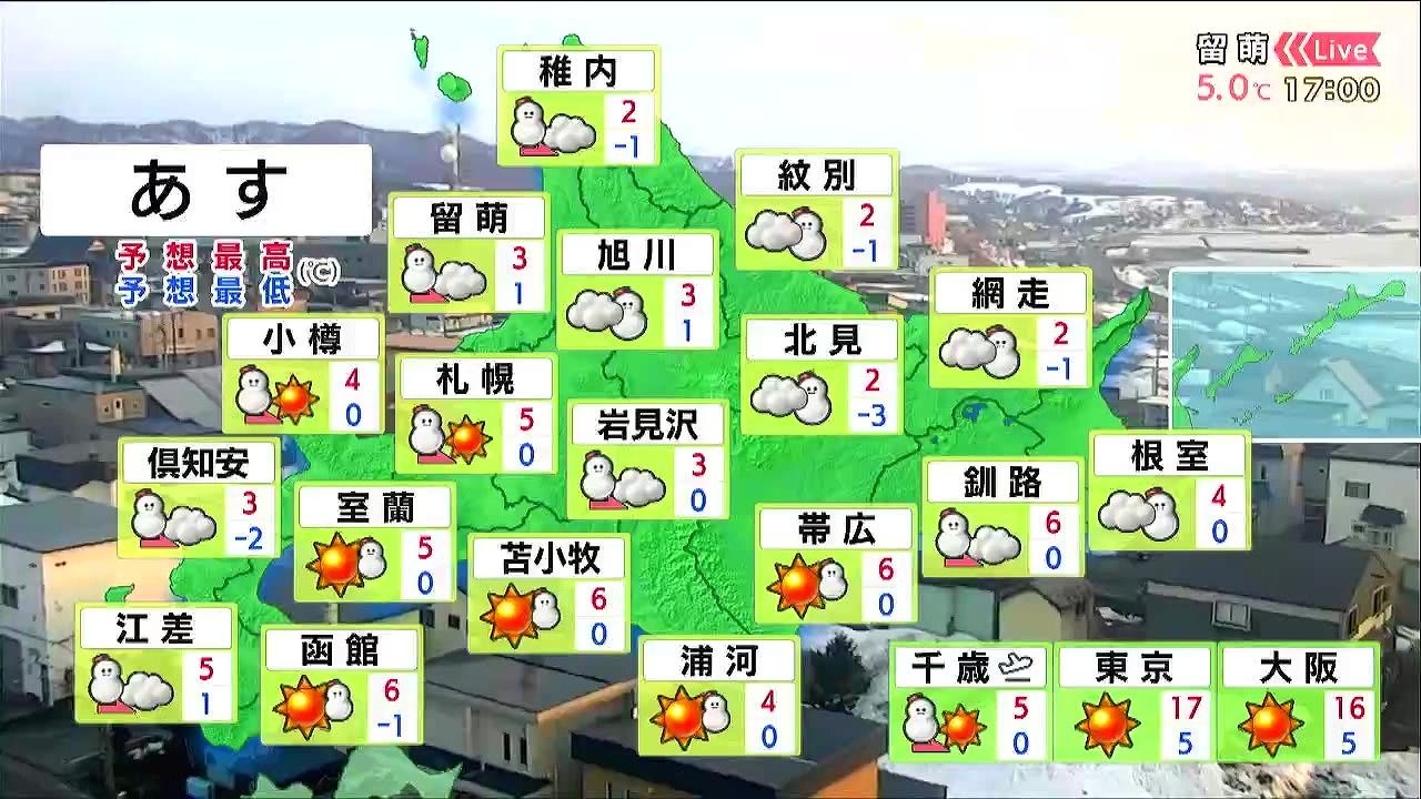 雪がほとんどない留萌ではきのう、積雪ゼロになりました。ただ、あす21日(土)にかけて、うっすら雪が積もるでしょう。強い風にも注意して下さい。