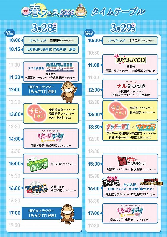 3月28日(土)・29日(日)の2日間、新さっぽろサンピアザにて「HBC春フェス2026」を開催します。