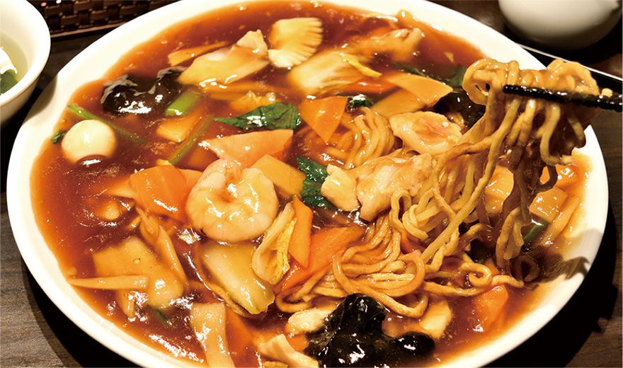 自家製スープに具の旨みが溶け込んだあんと、道産小麦粉を使ったモチモチの太麺が好相性。