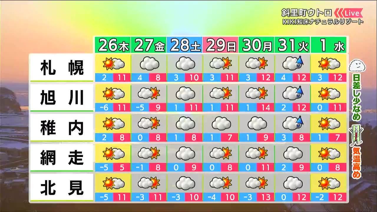 あす26日(木)の札幌です!朝昼晩の天気をもんすけでお伝えします!