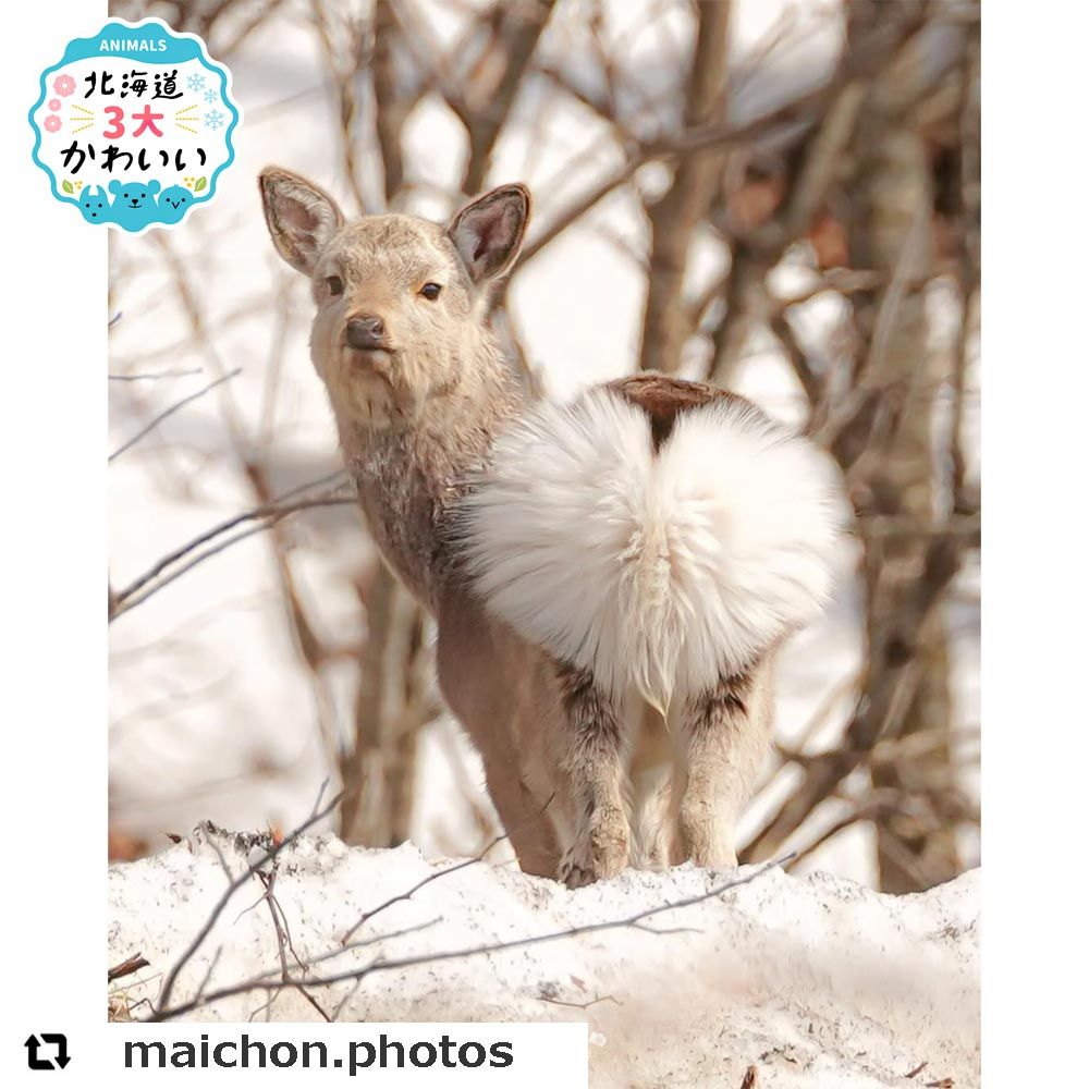 このお写真には「ハートのおしりのエゾシカさん!もふもふしたくなるおしり…でも実は警戒の印」とありました。