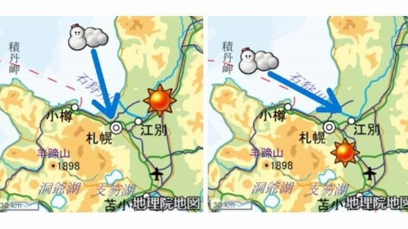 その理由のひとつ、北海道に暮らすみなさんなら身をもって感じていることかと思いますが、冬は比較的近い場所でも天気が大きく異なることがあるためです。