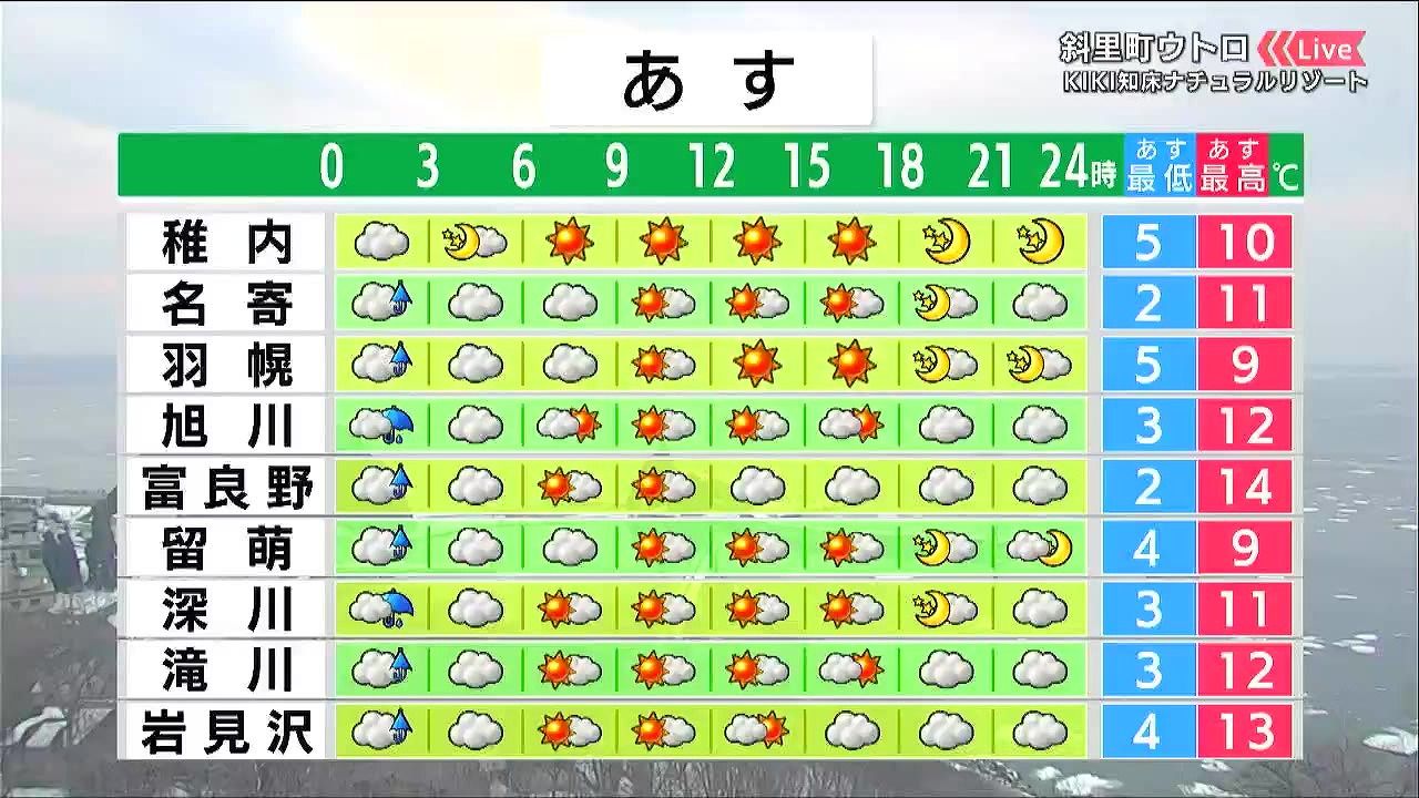 流氷シーズンは終わりを迎えつつあります。あす31日(火)も季節先取りの陽気が続きます。