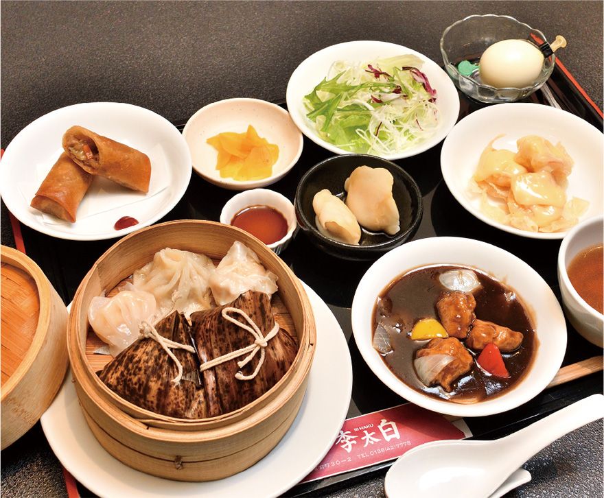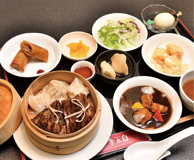店厳選のさまざまな料理を少しずつ取り揃えた「李太白セット」は、ランチタイム限定メニュー。