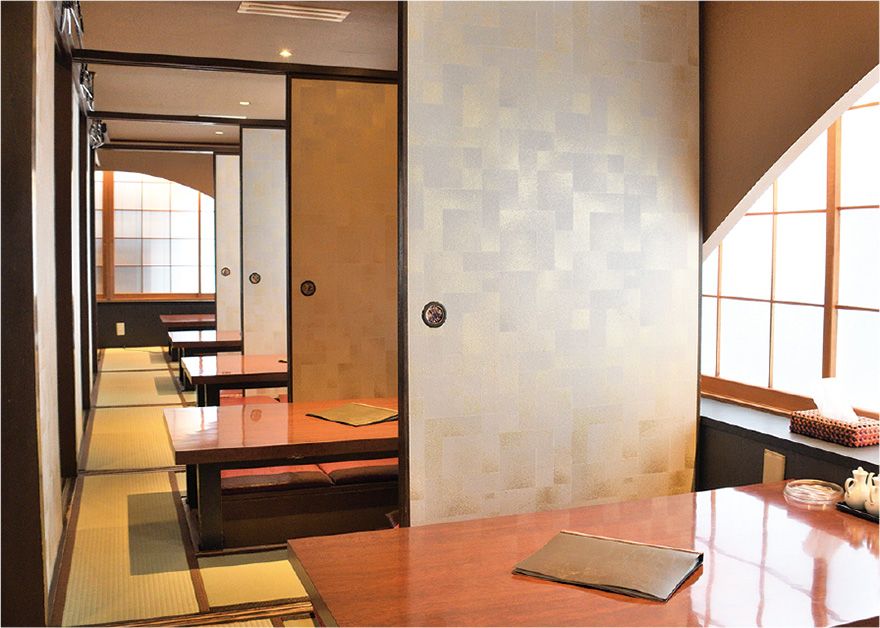 掘りごたつの個室やテーブル席も用意し、最大40人まで利用できる広間もある。