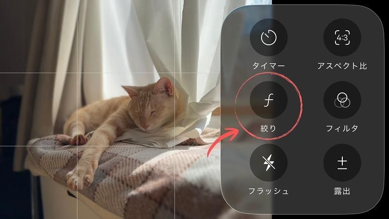 スマホカメラで「ポートレートモード」を選ぶと、「F値(絞り)」を調整して写真のボケ感をお好みで変えることができます。