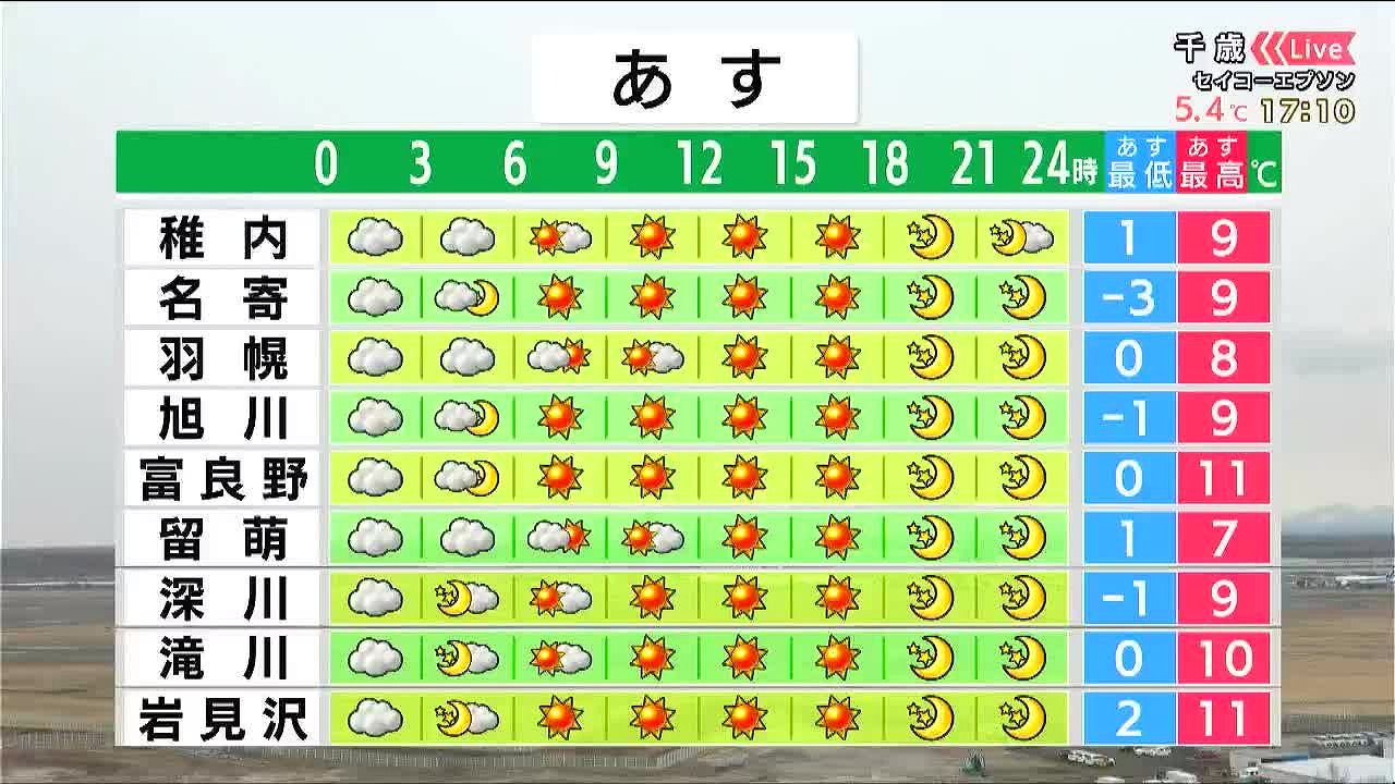 あす3日(金)の時間ごとの天気。道央・道南からです。