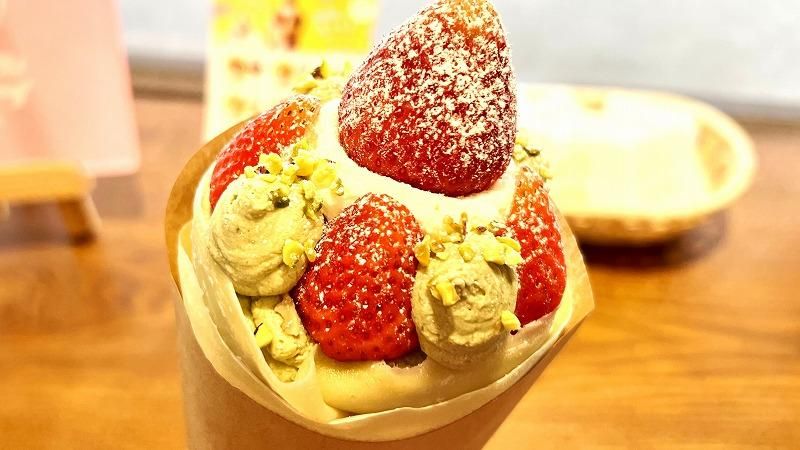 いちごのジューシー甘酸っぱい感じに、北海道産にこだわった生乳を原材料とした生クリームやピスタチオクリームが絡み合う味わいは、まるでパフェのよう!