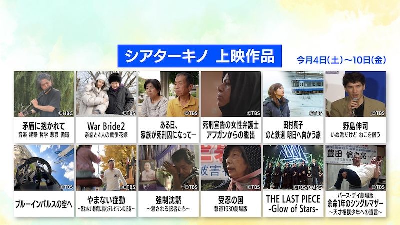 シアターキノではほか11作品が上映されます。各作品の詳細は「TBSドキュメンタリー映画祭2026」公式サイトから、上映時間は「シアターキノ」ホームページからご確認ください。