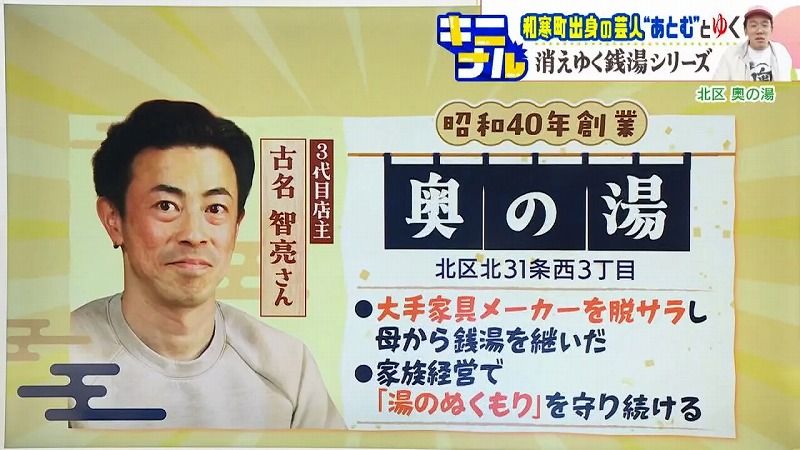 あとむさんが継いだ理由について聞いてみると「母親が体を壊して『しんどい』というのを聞いて、ちょっと考えてからやるわと。やっぱり銭湯がどんどん潰れていってるから今だと市内に27軒しかないので、最後の1軒になるまでがんばります」と答えてくれました。