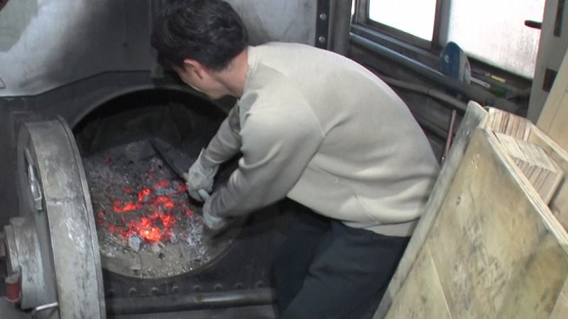 「熱っ!これ、夏やばいっすね。うわーすごい肉体労働ですね、これね。大変だなこれをずっとやっていただいて。銭湯好き代表としてありがとうございます」