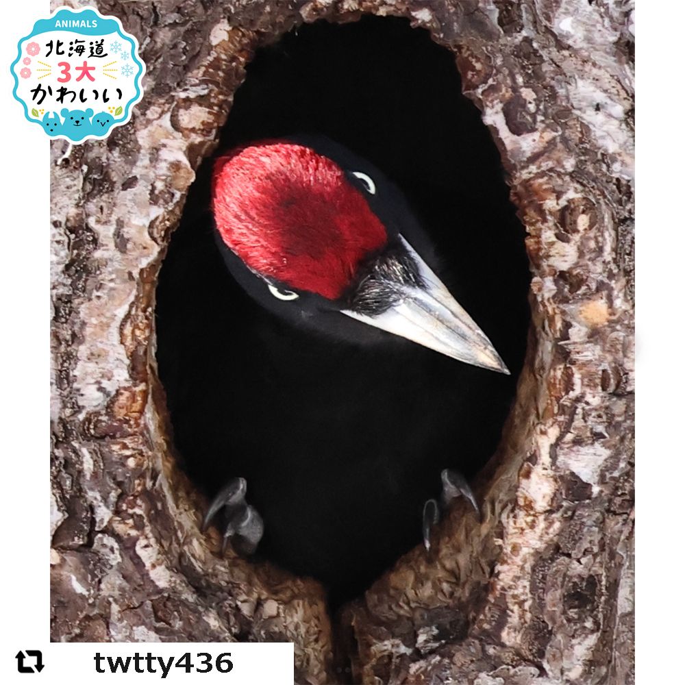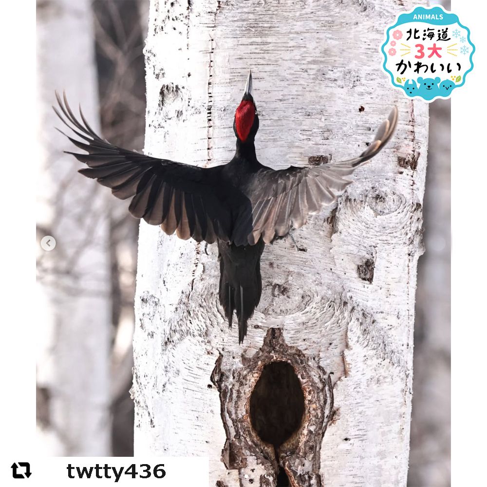 なかでも、おもに北海道の森で暮らすクマゲラは日本最大のキツツキ。