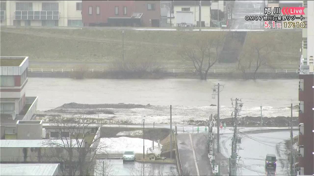 旭川を流れる石狩川は濁っていて、少し流れが速くなっています。融雪注意報が出ています。土砂災害や低い土地の浸水、そして今夜は雪による路面状況の変化にも注意して下さい。