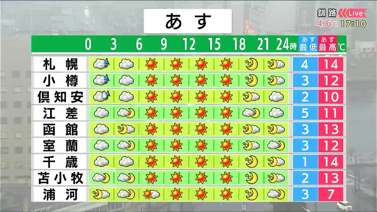 あす8日(水)の時間ごとの天気。道央・道南からです。