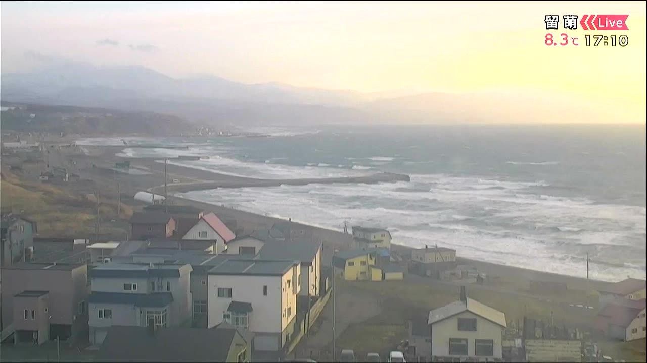昼頃から風速10メートル以上と歩きにくくなるほどの強風が吹いています。あす9日(木)の留萌地方は警報級の暴風となるおそれがあり、高波にも引き続き注意が必要です。