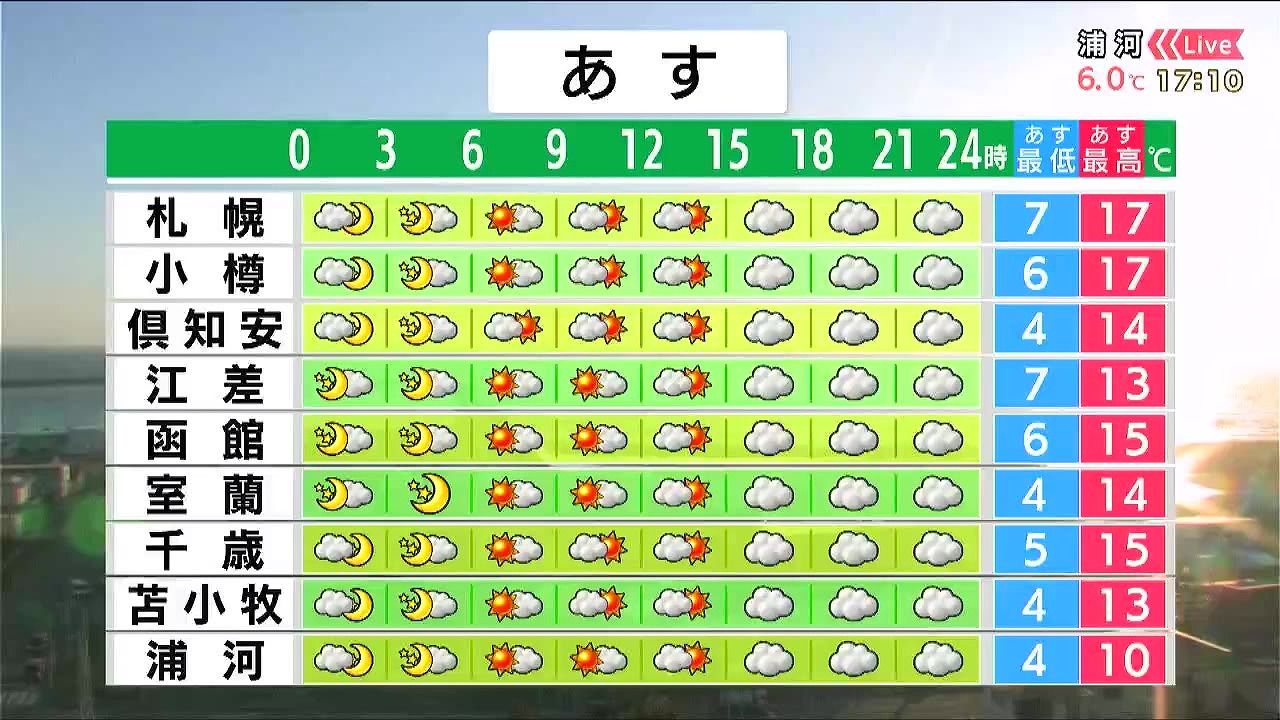 あす9日(木)の時間ごとの天気。道央・道南からです。