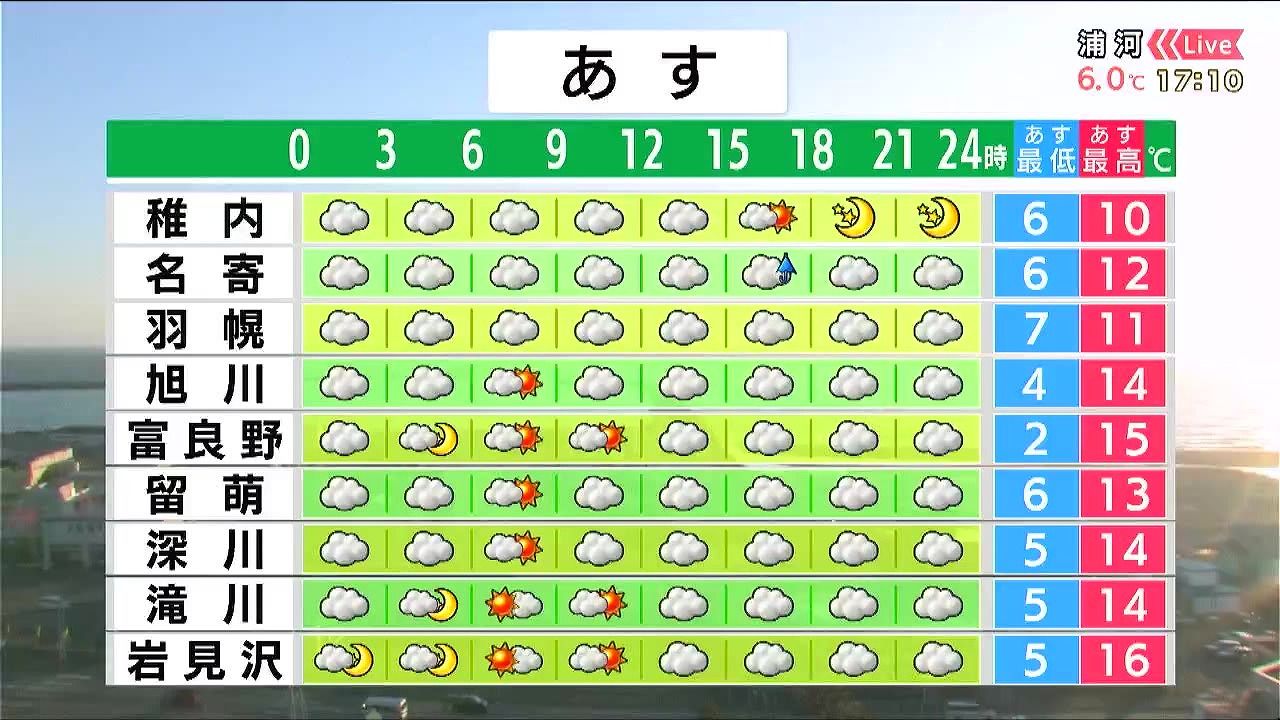 雲が広がり、あす9日(木)も風がやや強いでしょう。上川北部や留萌地方を中心に暴風となるおそれがあり、午後は名寄周辺で弱い雨が降るでしょう。気温は朝から高めです。