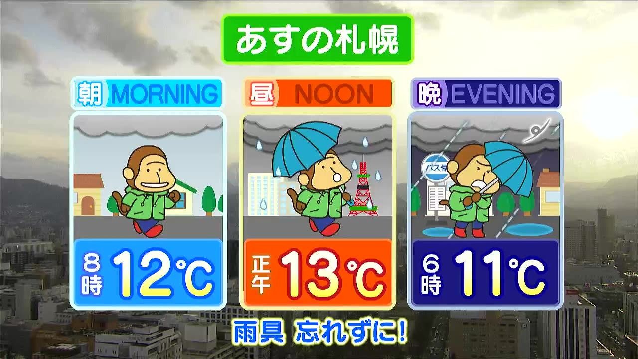 あす10日(金)の札幌です!朝昼晩の天気をもんすけでお伝えします!