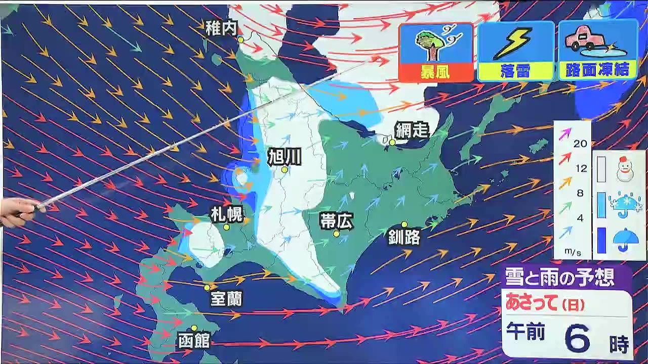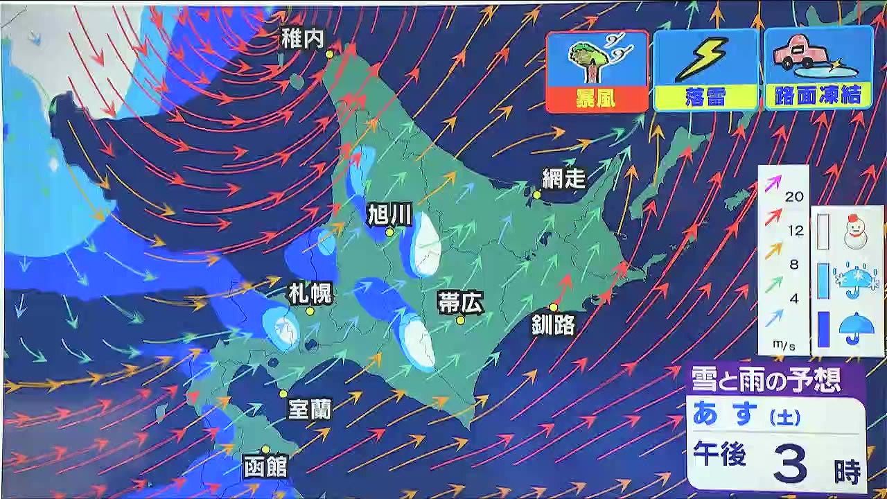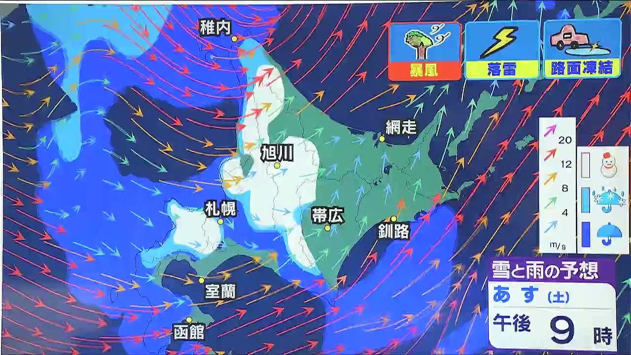 あす11日(土)は道北を中心に暴風に警戒し、広い範囲で落雷や路面状況の変化にも注意して下さい。