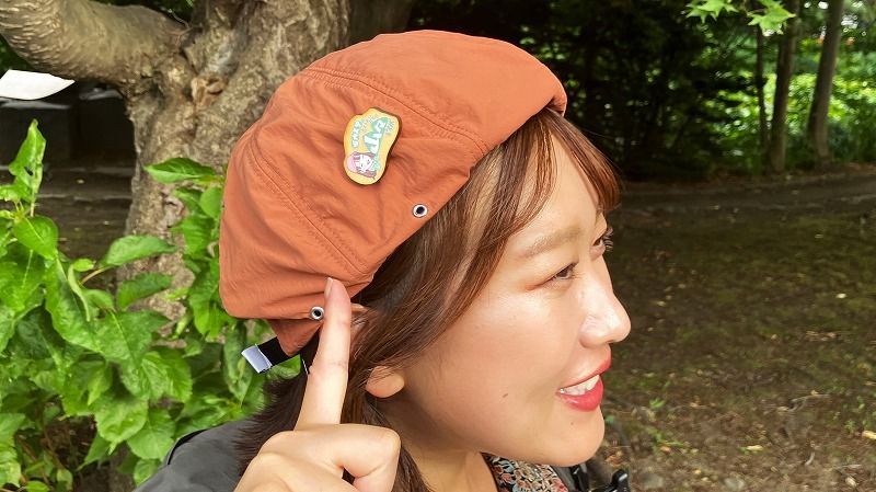 山バッジは、Sitakkeで防災マンガ連載を担当する、元海上自衛隊員のイラストレーター・ヤマモトクミコさんが描いた堀内アナの似顔絵入り!