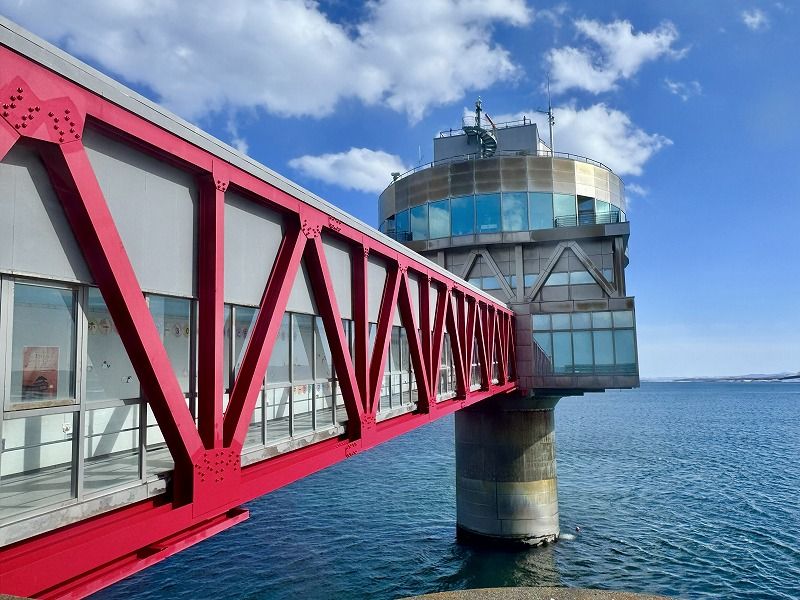 オホーツクタワーは海岸から約1キロ沖合の海上展望施設で、海上3階、地下(海底)1階の構造をしています。