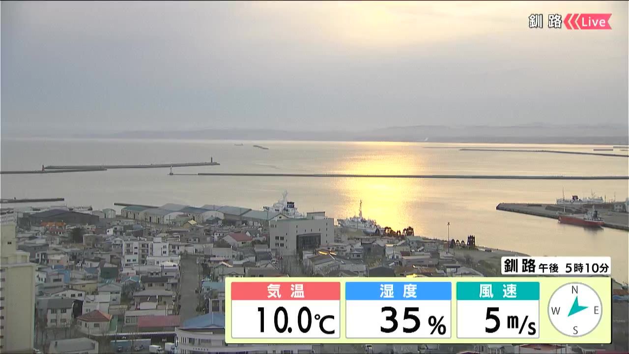 釧路は穏やかそうですね。薄日も差しています。海も穏やかですが、あす16日(木)はうねりを伴って波がやや高くなりそうです。