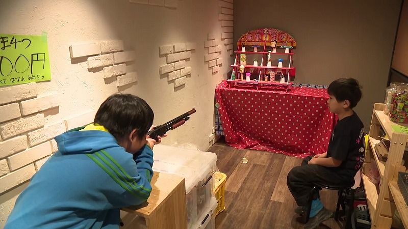 店内には、射的コーナーなどが設けられた駄菓子店のスペースがあります。