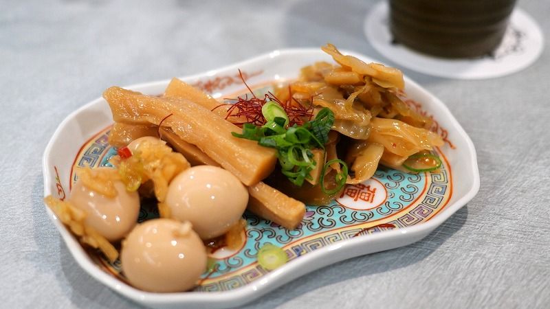 まずは麻薬うずら・メンマ・ザーサイのセットをオーダーし、お湯割り焼酎でしっぽり飲み始めました。