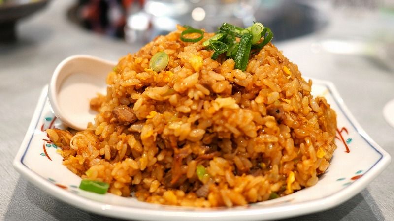 お隣の方が食べているのを見て気になり過ぎて、チャーシューの黒炒飯もオーダーしました。
