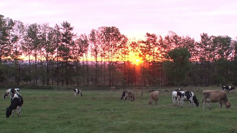 丘の上から見るオレンジ色の朝焼け…あまりの美しさに牛追いの作業も忘れて見入ってしまいました。