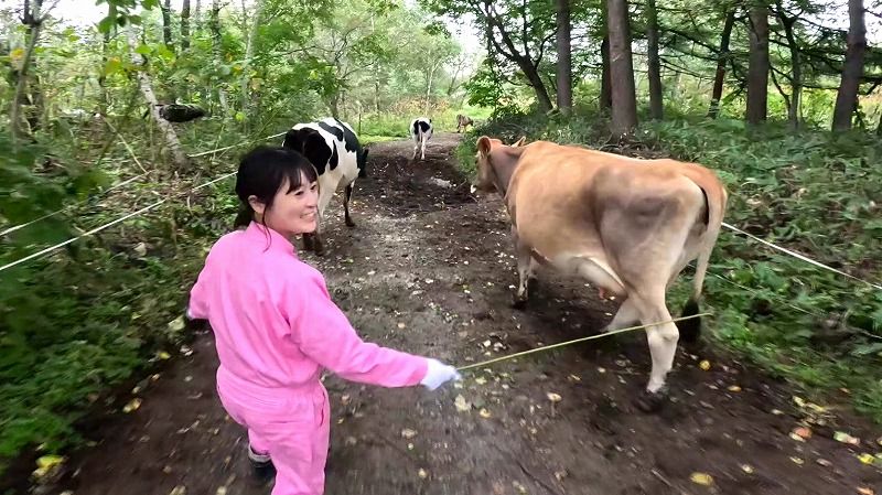 その後は一人で牛を牛舎まで連れていく役割も任され、責任を持って無事にやり遂げることができました。
