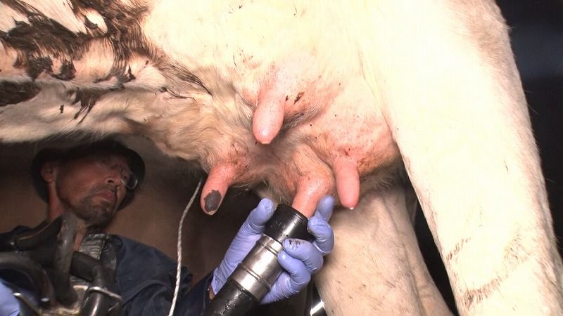 牛舎に到着してからは搾乳作業を朝と同じように行います!