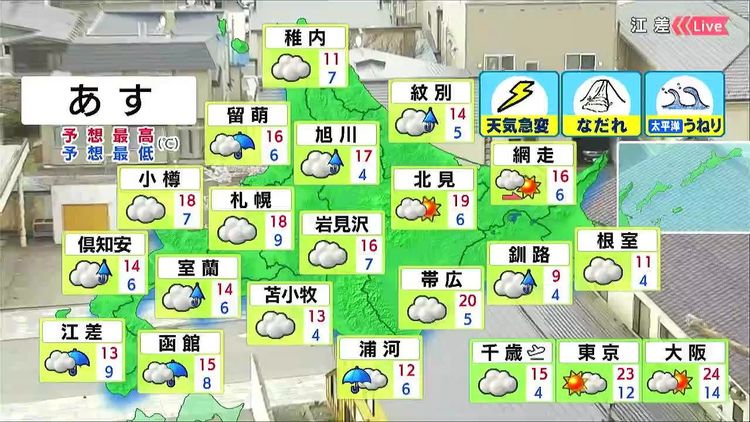 北海道のあす18日(土)の天気と、週間予報を、HBCウェザーセンターの児玉晃(こだま・あきら)気象予報士がお伝えします。