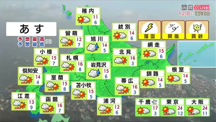 ・あすの北海道の天気と気温
