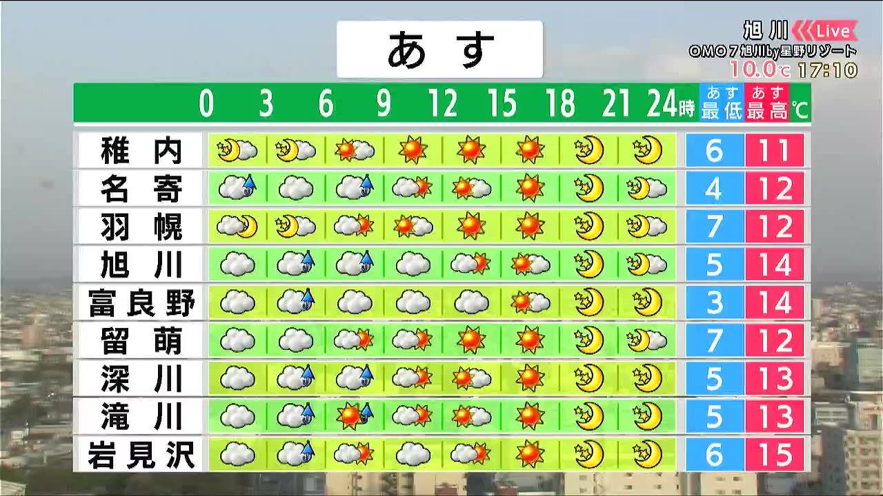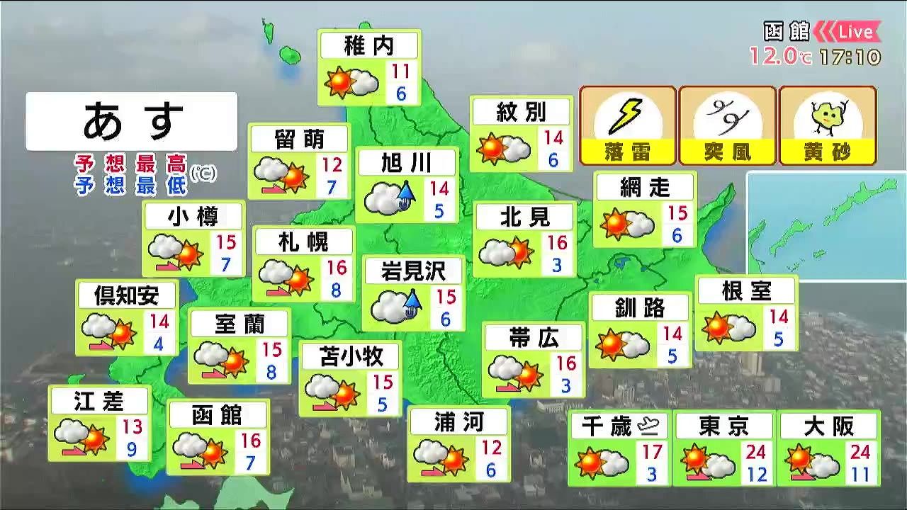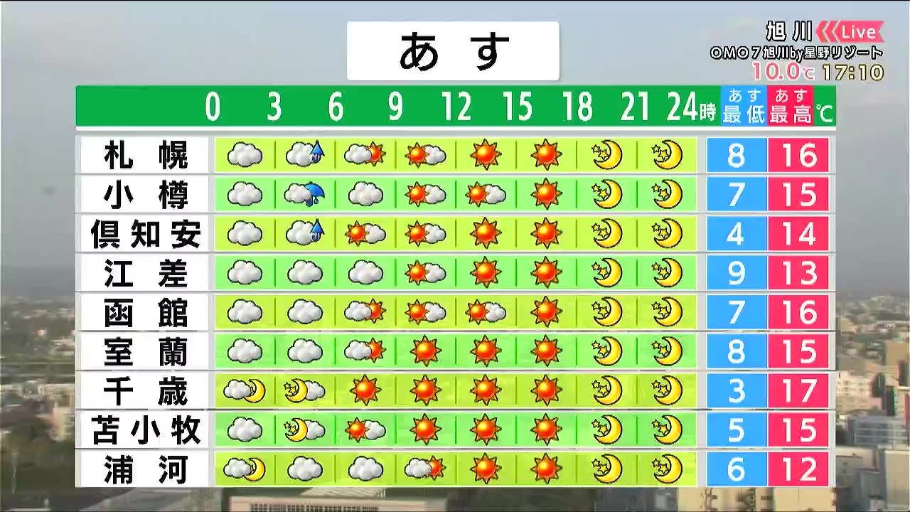 ・あすの札幌の朝昼晩の天気