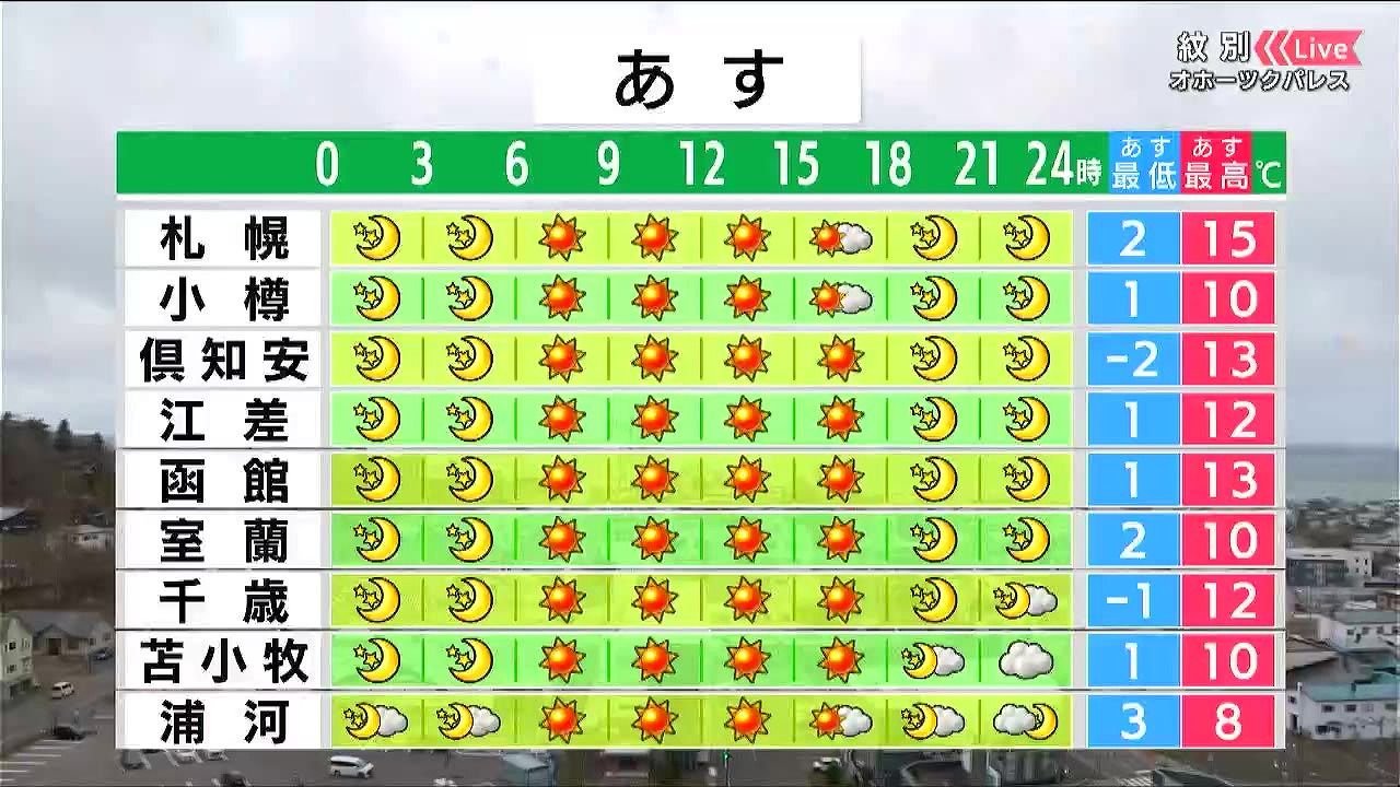 あす25日(土)の時間ごとの天気。道央・道南からです。