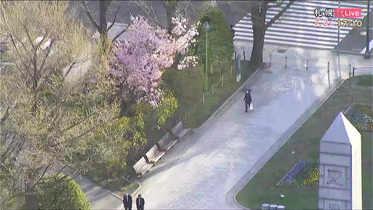 札幌大通公園のサクラも見ごろで、土日はベンチに座って花見をするにも良い日和になりそうです。