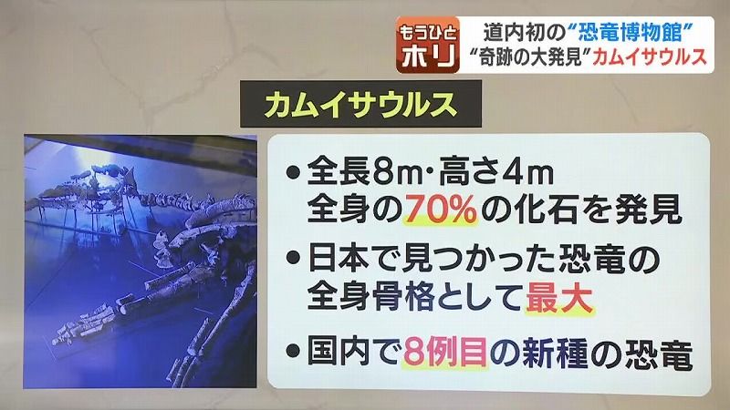 「奇跡の大発見」とされるカムイサウルスですが、その特徴は、全長8m、高さ4mのうち、全身の70%が発見されたことです。