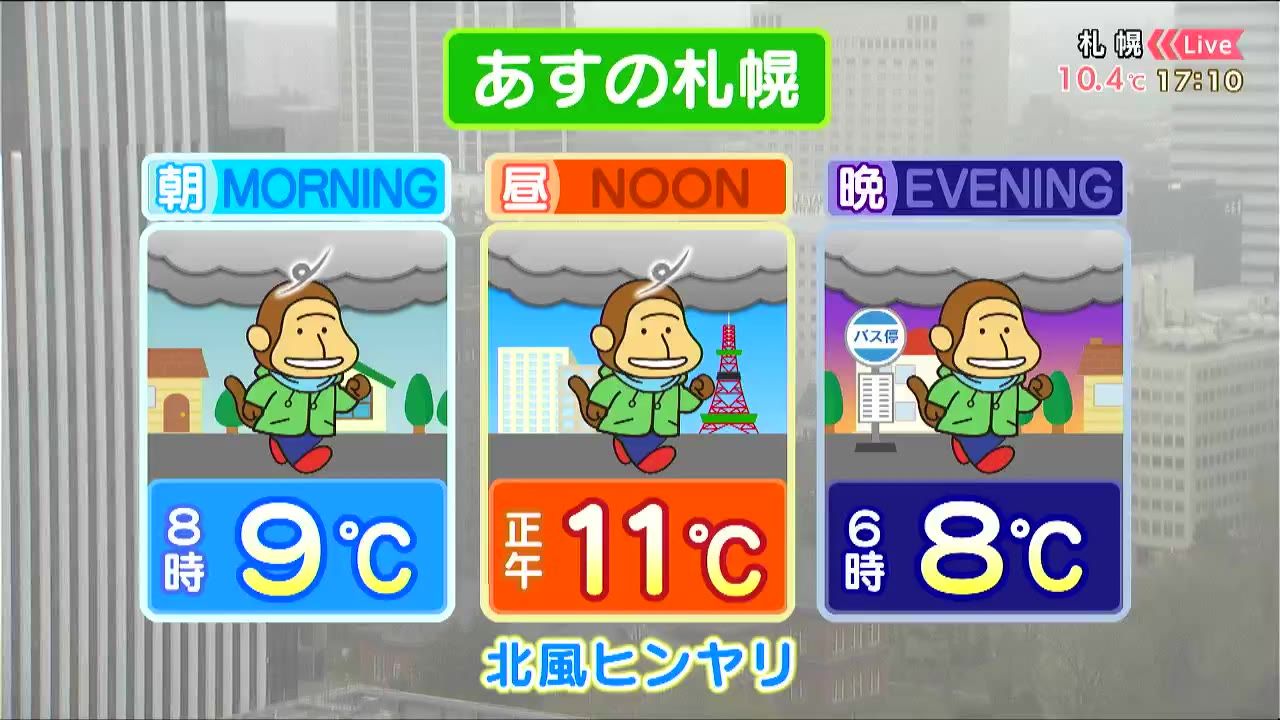 あす28日(火)の札幌です!朝昼晩の天気をもんすけでお伝えします!
