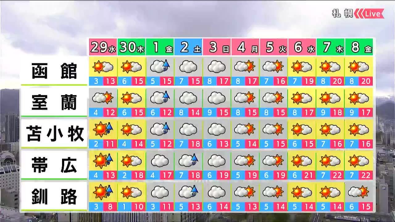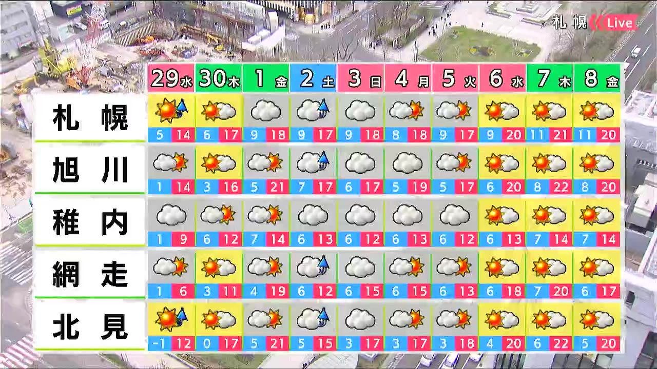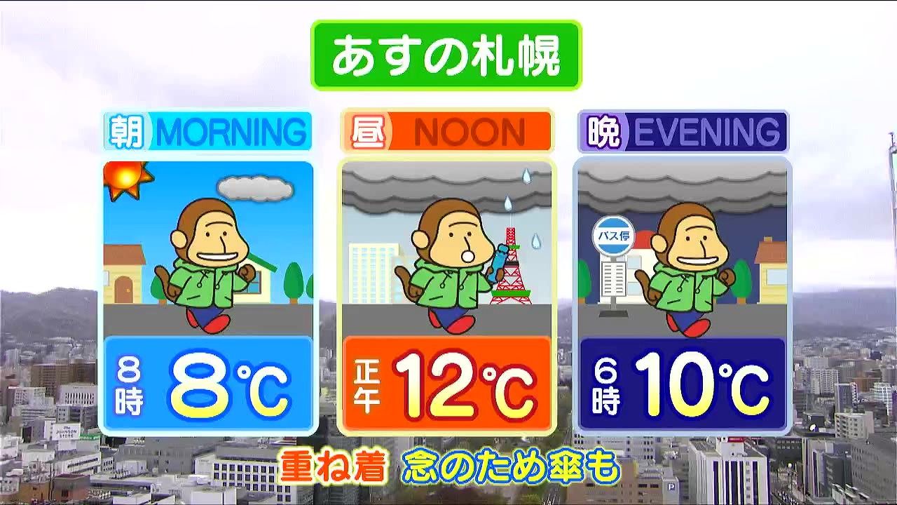 あす29日(水)の札幌です!朝昼晩の天気をもんすけでお伝えします!