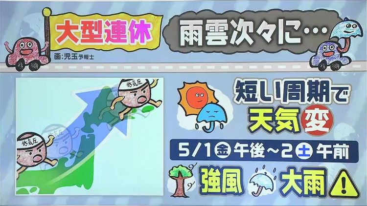 児玉気象予報士が描いた、独特なイラストとともに…。